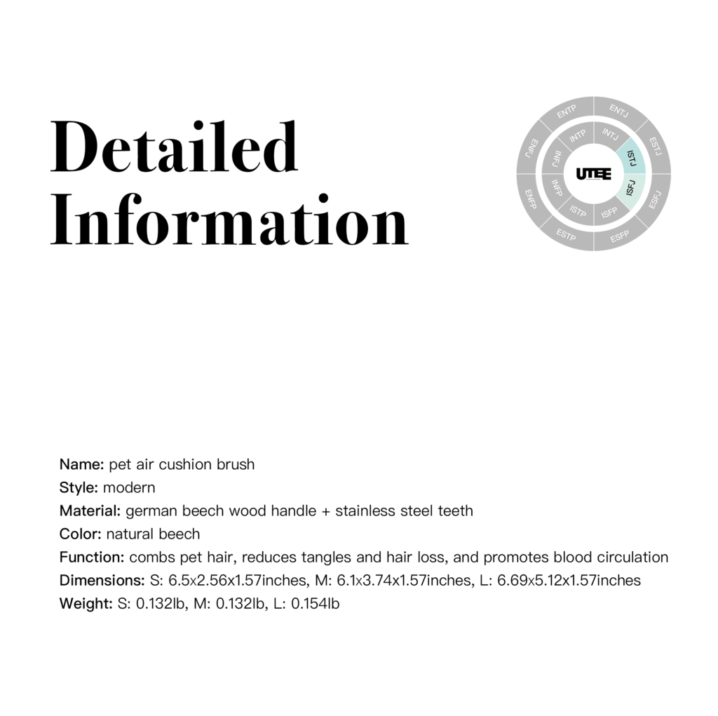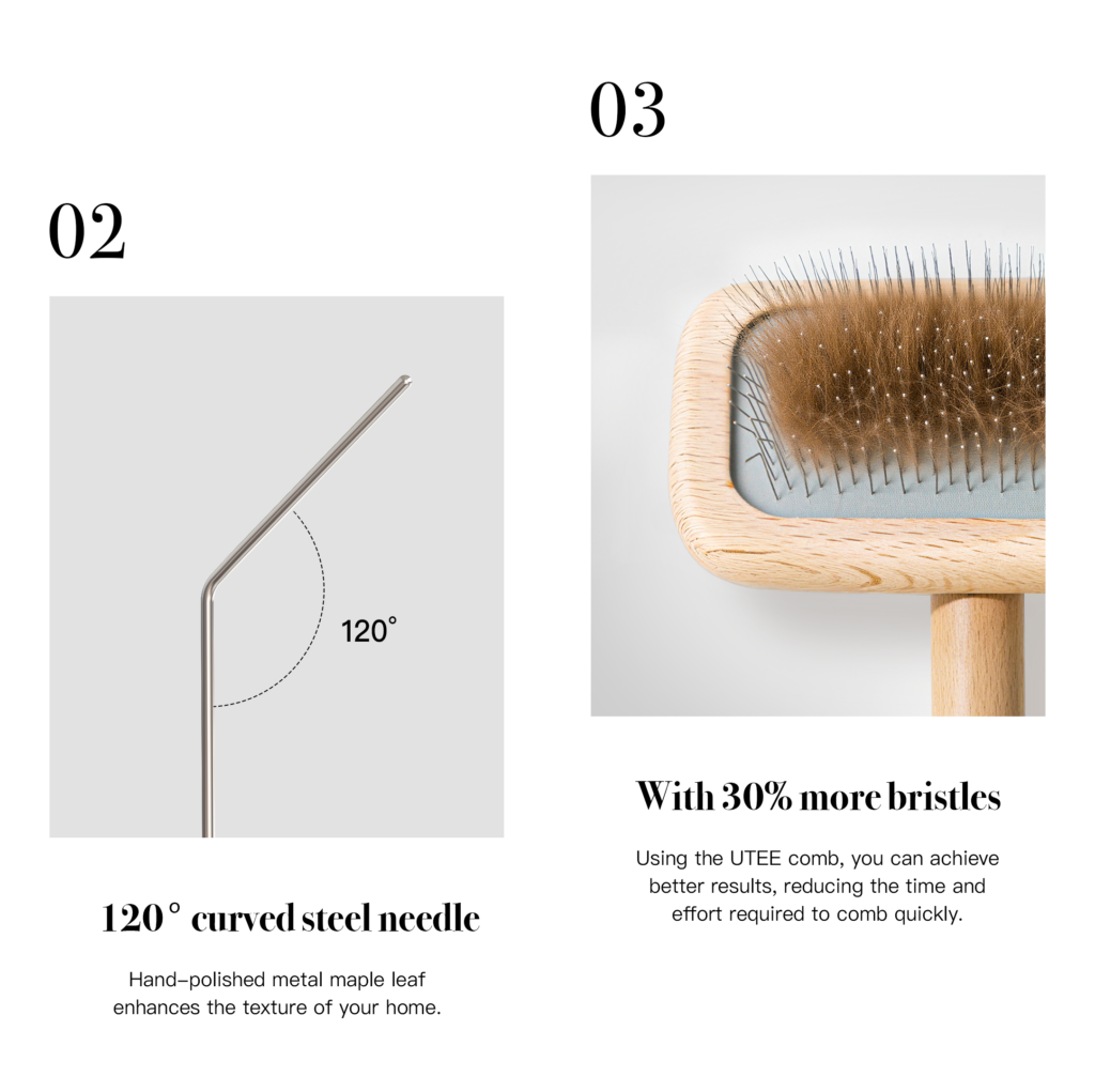 UTEE pet square air cushion comb is a comprehensive upgrade of the daily care experience of pets, an exploration of the combination of natural materials and modern technology, and a delicate care for the emotions of pets and owners. We hope that through this product, every combing will become a beautiful memory between pets and owners.