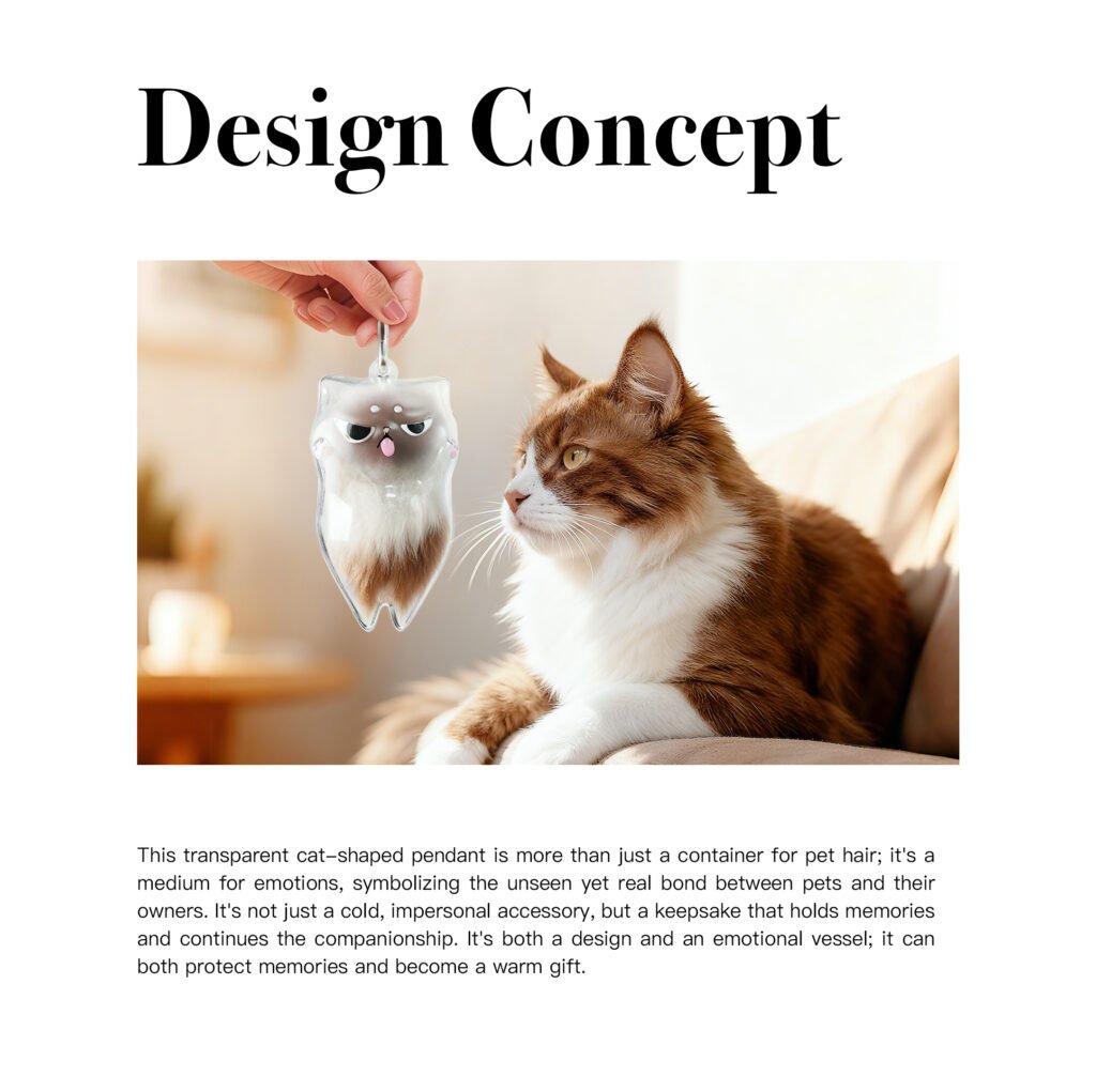 This transparent acrylic cat pendant is more than just a container for pet hair; it’s a medium for carrying emotions.